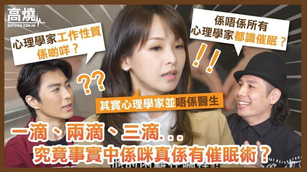 一滴、兩滴、三滴…大家或許在電視劇集中經常聽過催眠術,不過,在現實生活中,催眠術又是否有醫學根據?Gofever高燒主持阿感與Stanley早前邀請了臨床心理學家廖嘉敏(Carmen)為大家解構催眠術!Carmen更會談及心理學家的日常工作,了解心理學家及精神科醫生的大不同!